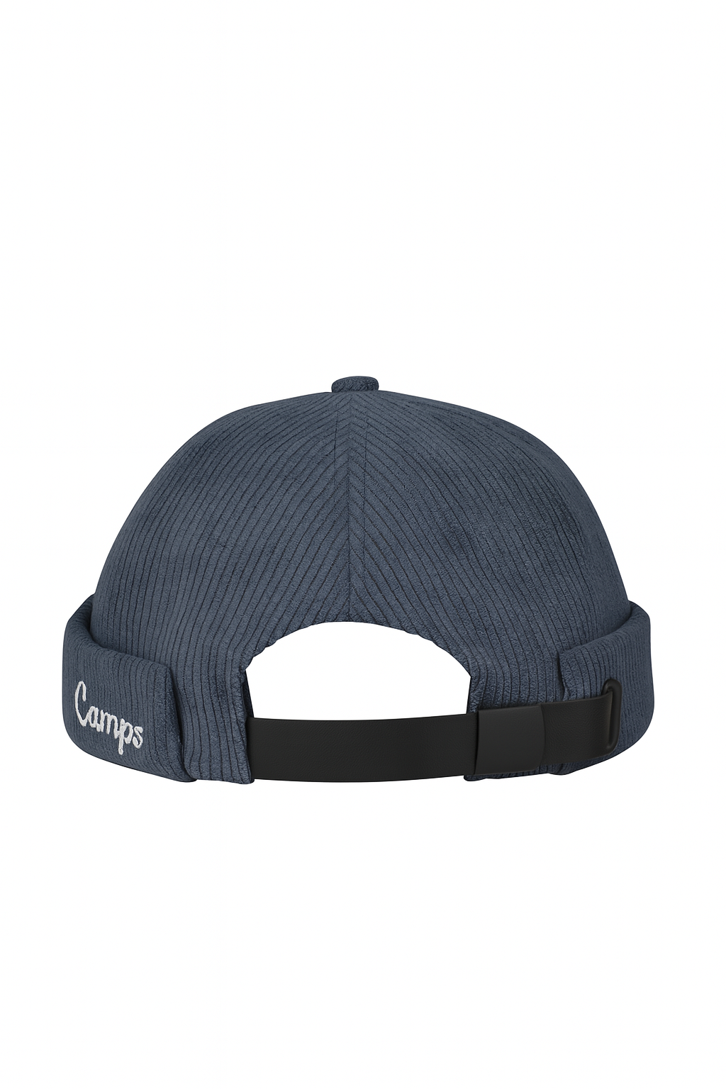 Corduroy hits different in navy. Finished with a black leather strap and metal buckle, it's understated from the front and unexpected from the back.